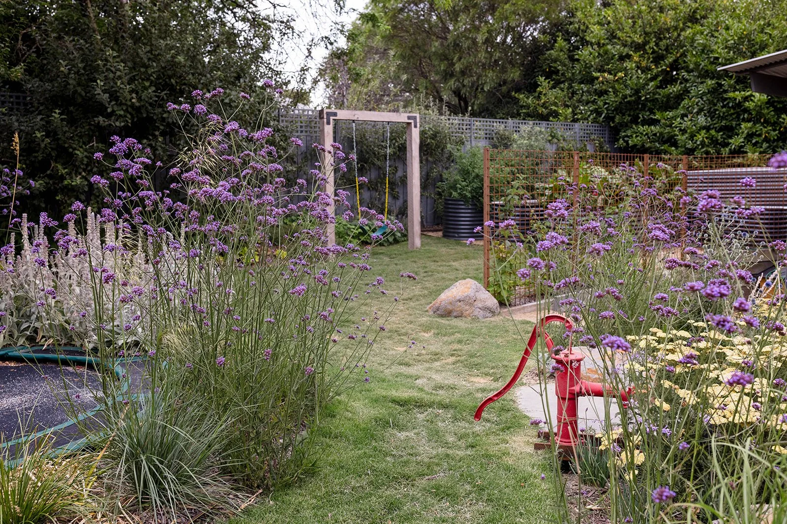 The brief was to create space for the whole family to enjoy, maximising the use of the small pockets around the house with areas for kids to play, a veggie patch, outdoor dining, and even a sauna and outdoor bath!