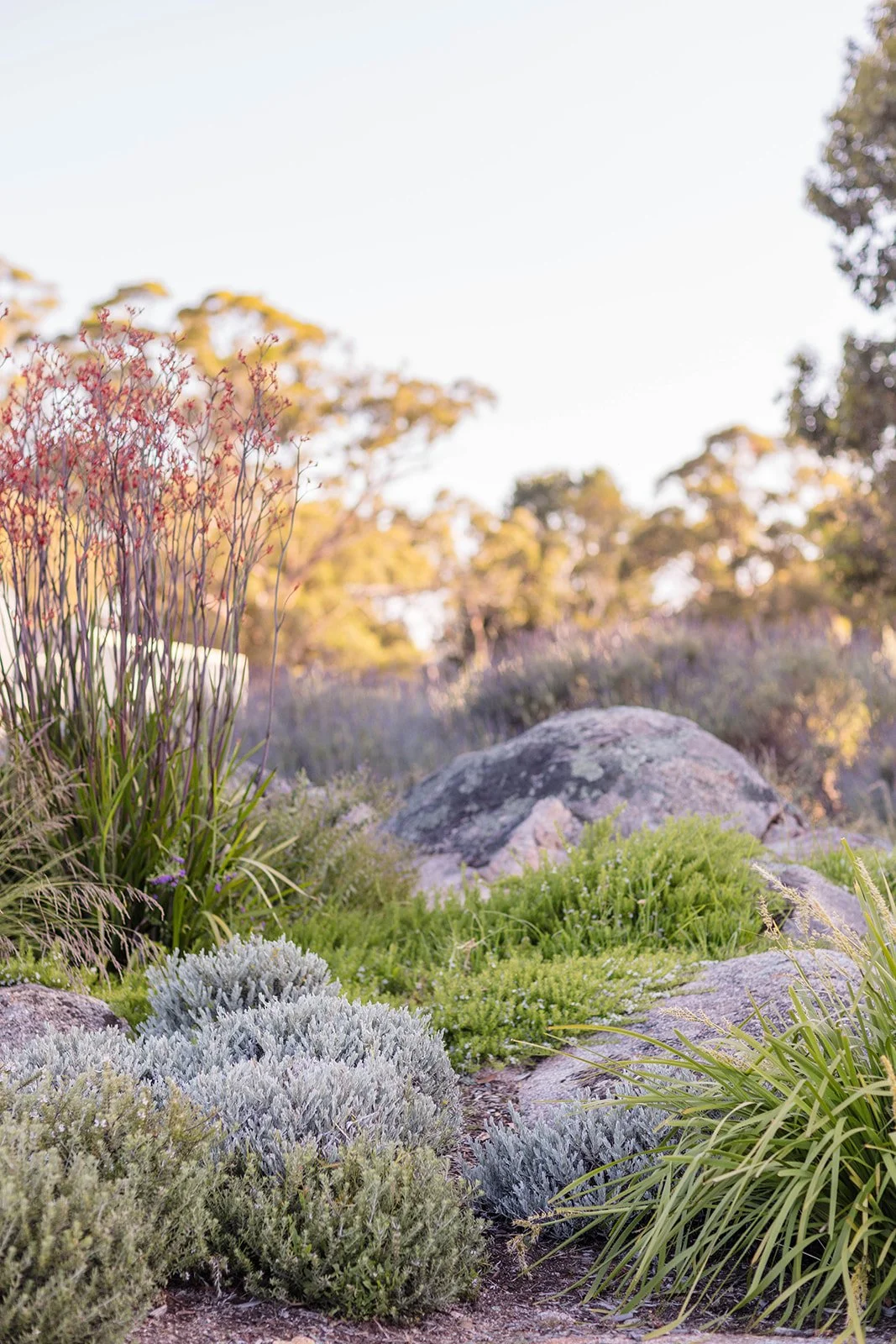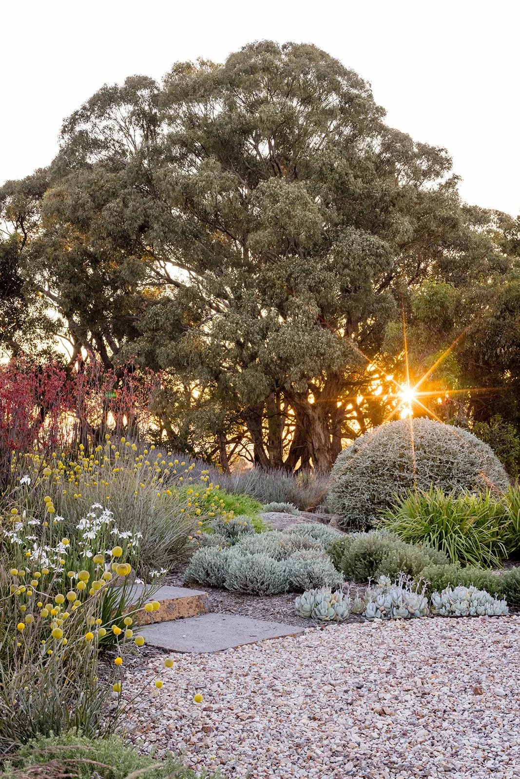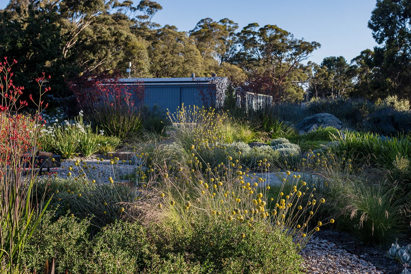 Constructed on a large, sloping and windswept site in Central Victoria, this garden incorporates many native plants with tough exotics to create a resilient planting.